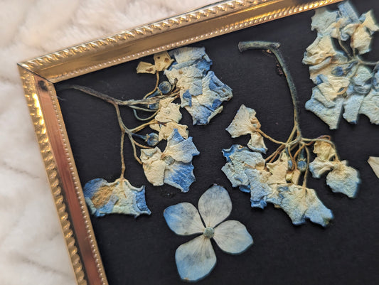 4x6 real pressed buttercups, hydrangeas and forget-me-nots