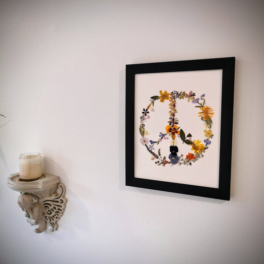 Real pressed flower art 8x10 peace sign