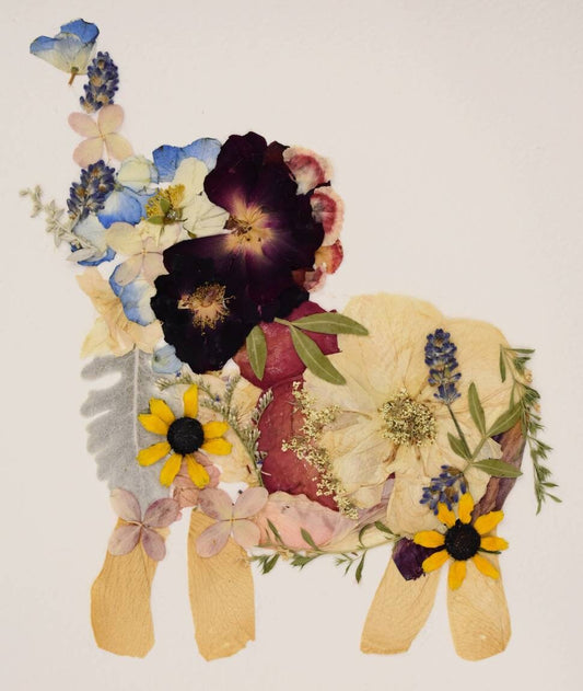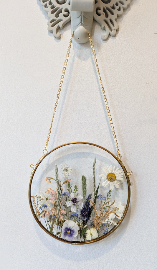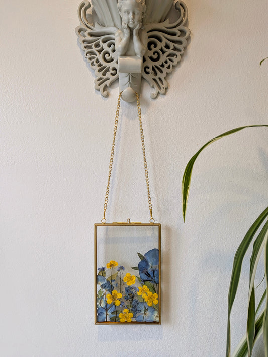 4x6 real pressed buttercups, hydrangeas and forget-me-nots