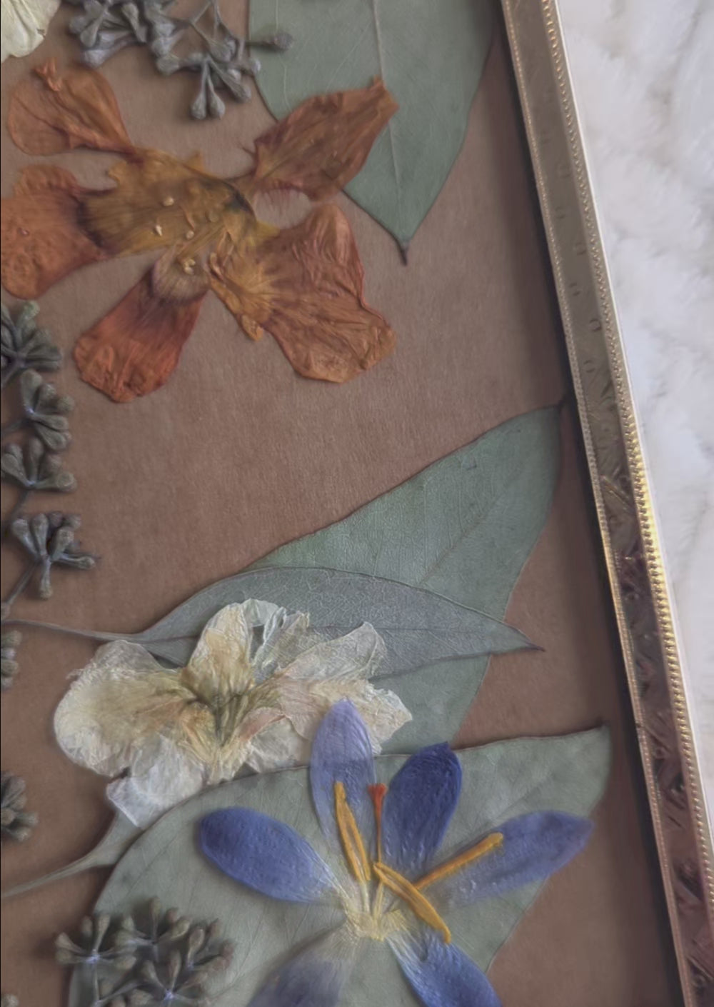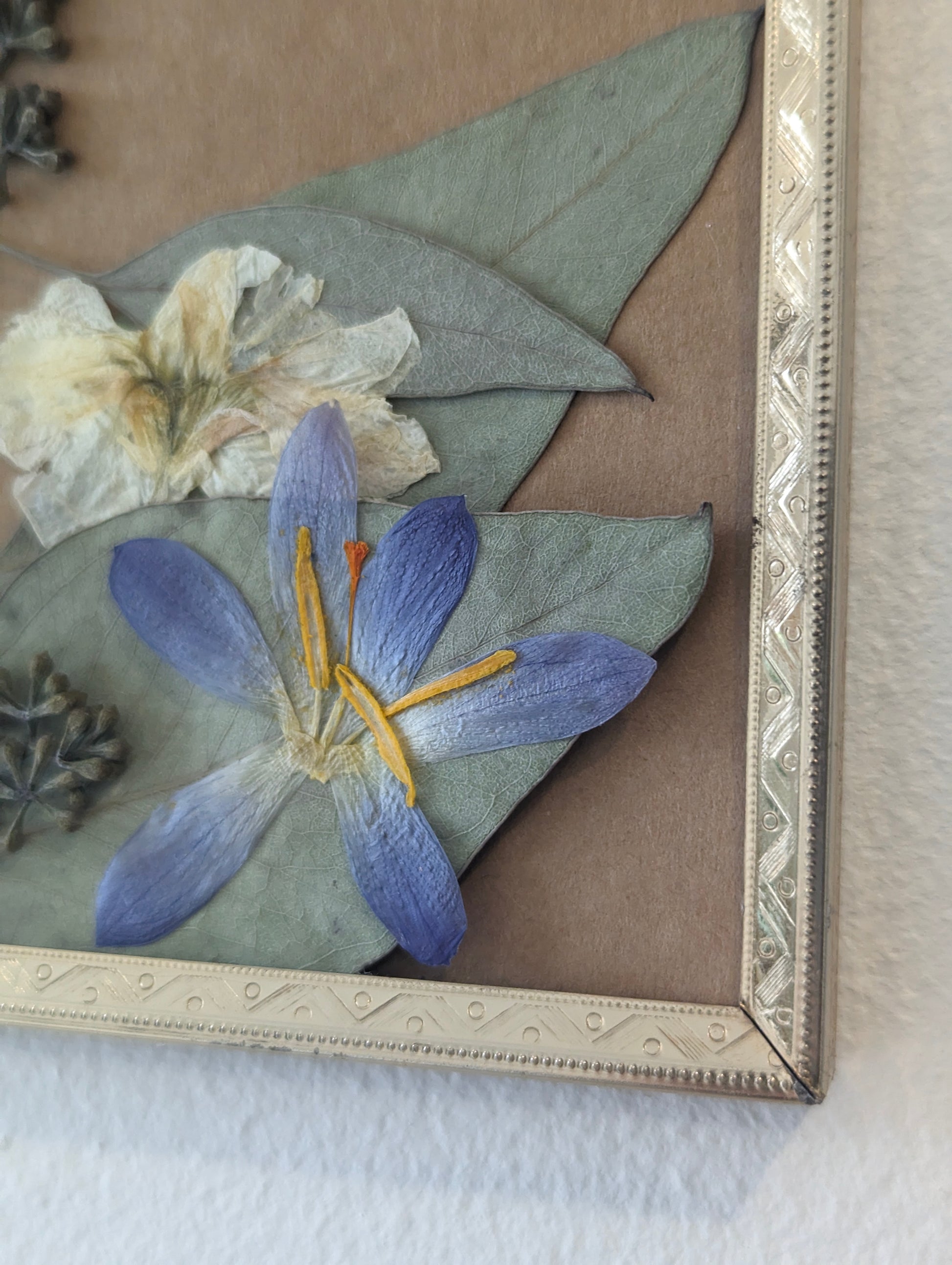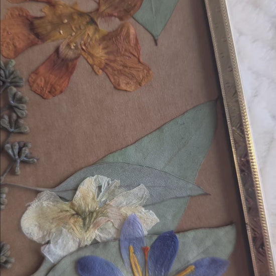 This original pressed floral piece comes in a 5x7 vintage frame. The muted tones conjure an age of elegance and simplicity. Gorgeous paired with any other Santa Florita piece.