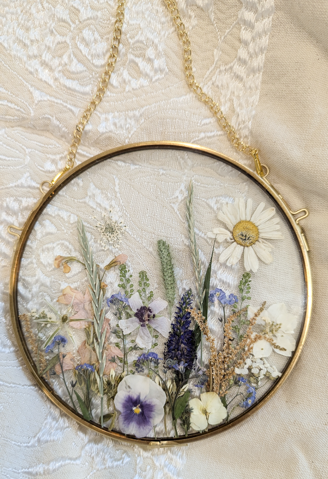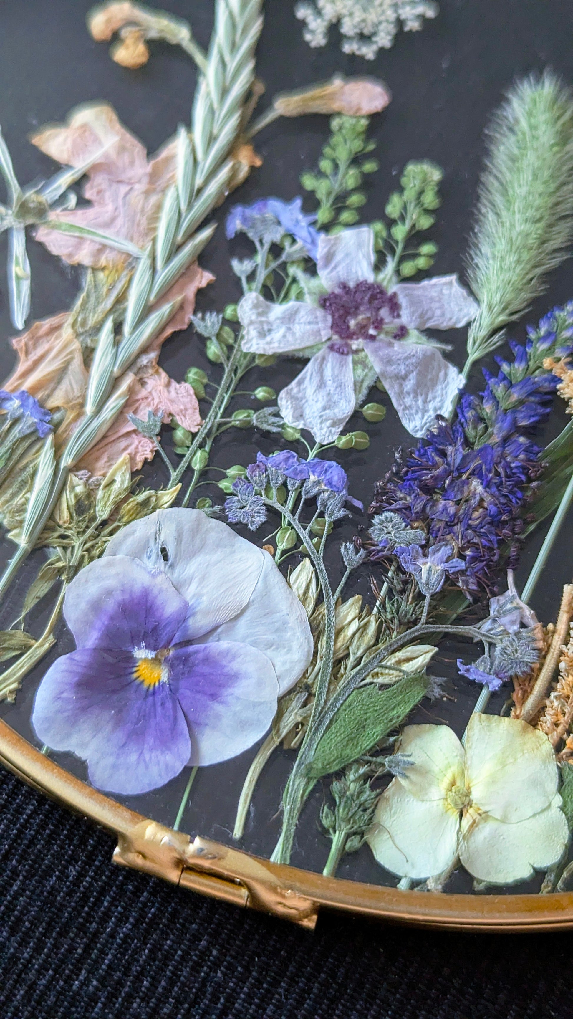 *please note that pressed flowers tend to fade slightly with time. Their beauty remains but they tend to eventually take on a more vintage feel.